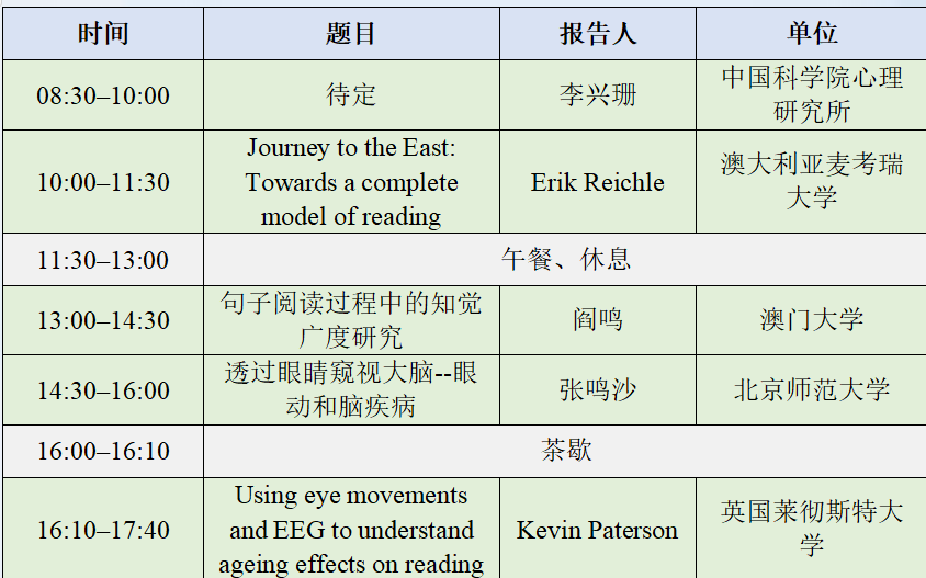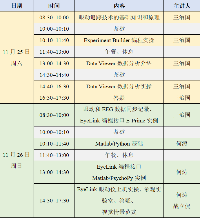日期:2023年11月24-26日(24日为学术报告模块,25-26日为眼动技术培训模块)。