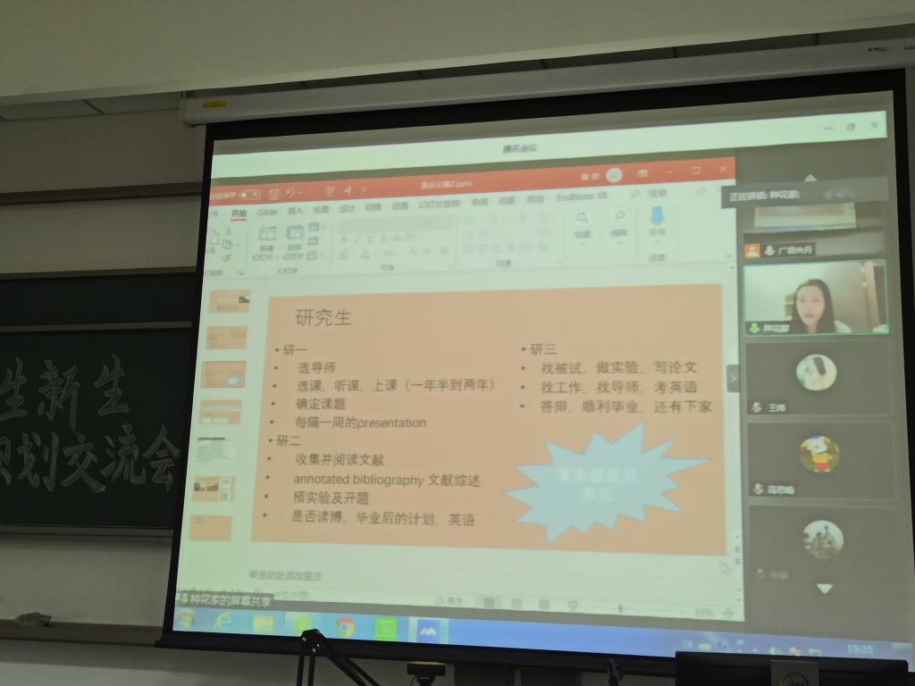 高思畅师姐从如何规划研究生期间的学习和生活、如何和导师进行沟通、如何在硕士期间发表论文以及读博和就业问题进行了系统详尽的总结性介绍。高思畅师姐目前作为一名硕士研究生导师,从导师的角度讲述了研究生学习和研究可能遇到的一些问题,也就自身经验对学生如何与导师沟通给出了建议。