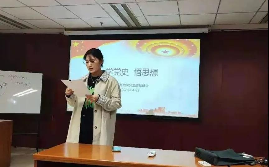 通过党史学习主题班会活动,基地研究生进一步了解党的光辉历史,感悟党的初心使命,提升基地研究生凝聚力和向心力,增强了研究生的责任意识和使命感。
