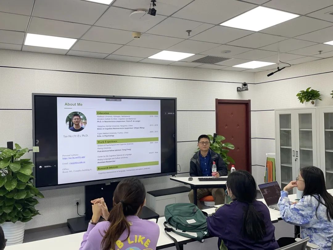 何涛老师分享了如何才能做好研究的心得体会,他提出做研究的五个步骤:有想法、做实验、分析数据、写文章、投稿。他建议大家在研究生阶段打好专业基础,合理管理时间,合理高效地进行学习。何涛老师还解答了在场同学提出的问题及存在的疑惑。他认为读不读博,最重要的是韧性,在面对困难时能不能想着去克服,能不能扛住压力,有没有克服困难的勇气,这样才可以在科研的道路上走的更远。