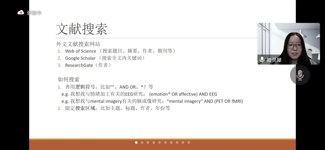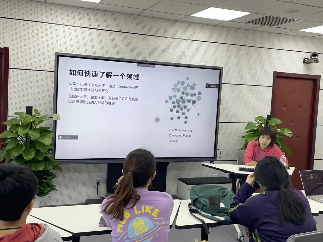 陆灵犀老师以文献搜索和阅读为切入点,从简要介绍文献搜集和管理的技巧,逐步深入到做研究的全过程。在讲到如何深入一个新的研究领域时,陆老师认为要先阅读一篇领域内近5年的综述,掌握基本概念和发展脉络,再以“研究内容”和“研究团队”为线索深入了解。陆老师还回答了同学们提出的诸多问题,还谈到科研是一个漫长的,不断锤炼的过程,要培养良好的科研心态和科研习惯,以形成一个提供正反馈的良好循环。