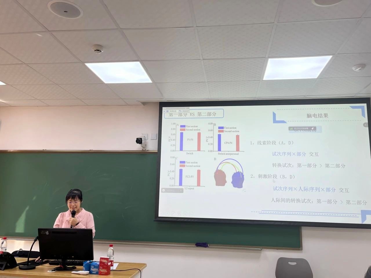 在交流互动环节,参会师生踊跃提问,刘欢欢副教授细致解答,并对大家研究中所存在的疑难问题提出宝贵建议。本次学术报告深化了师生对双语控制的认知机制的了解,拓展了学术视野,使参会者受益匪浅。