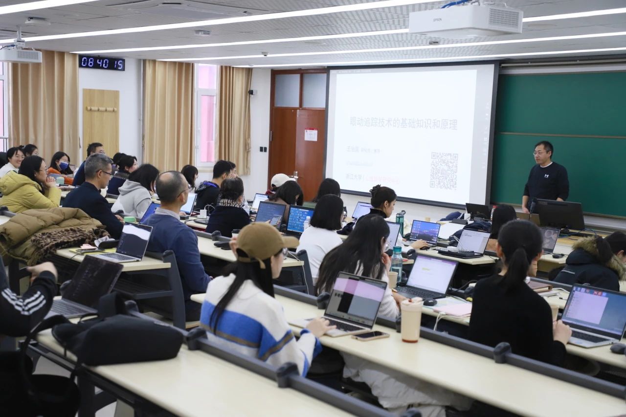25日上午,王治国研究员首先讲授了“眼动追踪技术的基础知识和原理”。他详细介绍了眼动的基础知识、眼动追踪的记录方法、校准、眼动监测、数据质量、常用使用范式以及眼动的可视化分析原理。报告强调眼动实验中的重要因素和实验步骤,并对眼动实验的应用领域的前景进行展望。