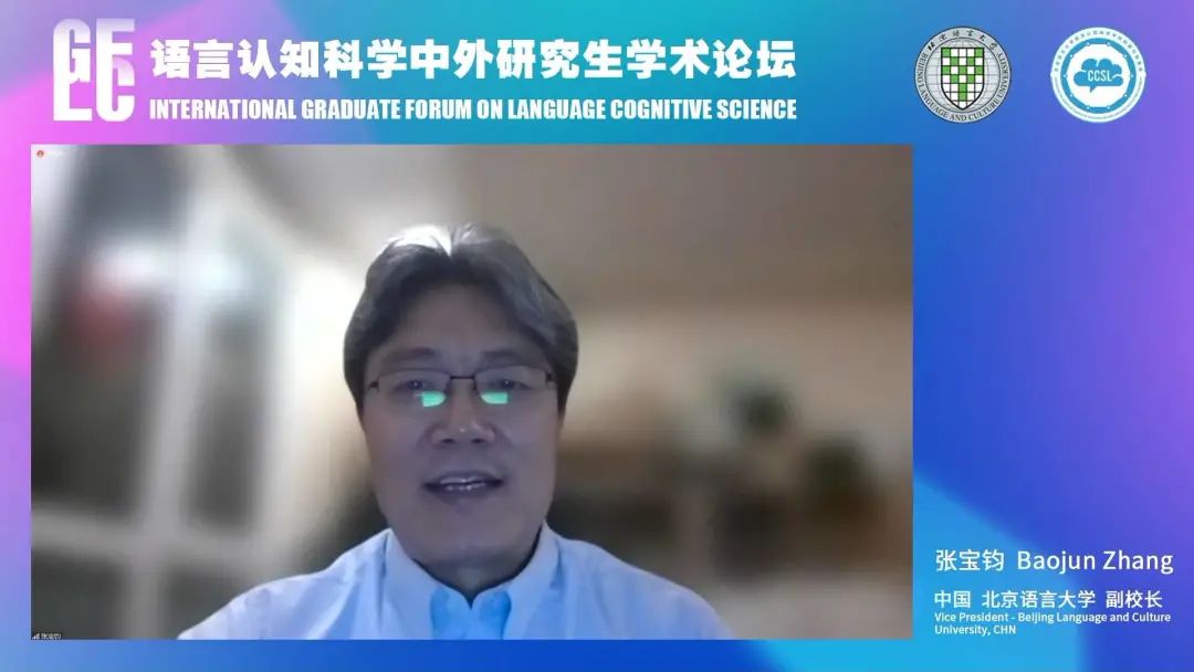 2022年6月11日,由北京语言大学语言认知科学学科创新引智基地、语言认知科学研究院主办的“语言认知科学中外研究生学术论坛”成功举办。来自海内外67所高校和研究机构的112位研究生以及参与大会报告点评的著名国际学者共聚云端,切磋学术,交流创见。北京语言大学校长刘利、研究生院院长郭鹏、校团委书记张晴、语言认知科学学科创新引智基地主任王建勤出席开幕式,开幕式由语言认知科学学科创新引智基地科研秘书任可歆主持。论坛采用线上ZOOM会议形式,通过B站直播平台进行现场直播。