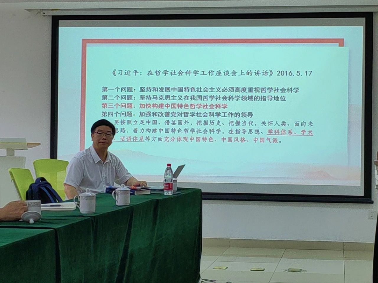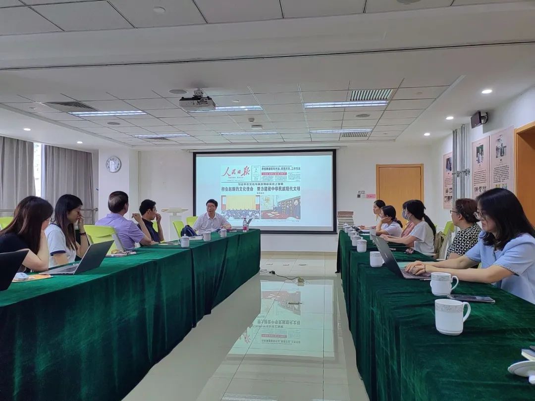 为深入开展学习贯彻习近平新时代中国特色社会主义思想主题教育,学习领会习近平总书记在文化传承发展座谈会上的重要讲话精神,2023年6月28日下午,基地特别邀请我校马克思主义学院张加才教授为党员师生讲授专题党课,党课题目为“守正创新 建设中华民族现代文明”,基地全体党员和团员参加了党课学习。