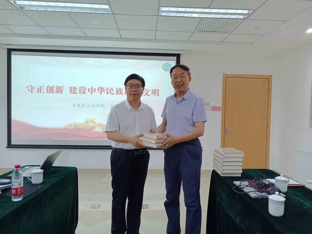 党课结束后,张加才教授向基地师生赠送一套《刘文英文集》(九卷)。